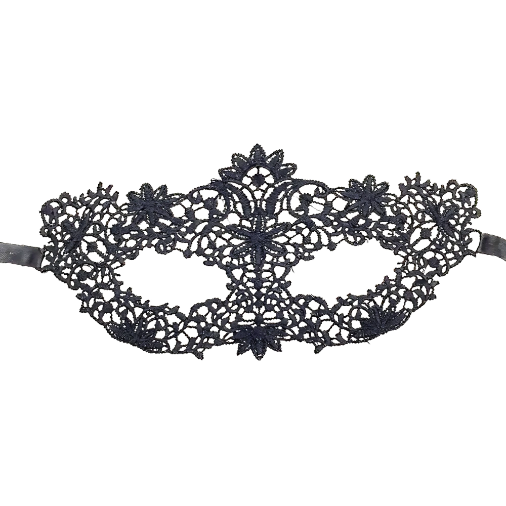 Modelo veneziano com aplicação floral na trama rendada, esta máscara preta oferece acabamento detalhado e conforto para uso prolongado. Ideal para festas temáticas, eventos sociais ou produtos sensoriais, é uma peça versátil para compor catálogos sofisticados.